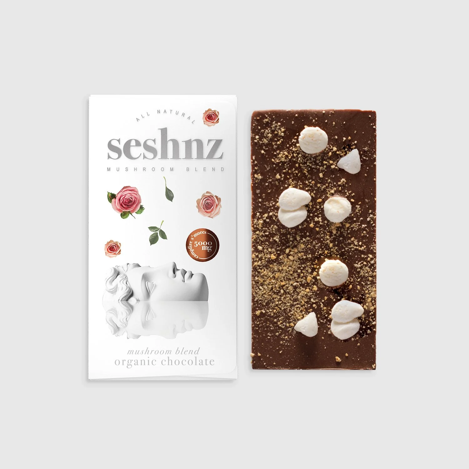 Seshnz Organic Mushroom Blend Chocolate combines rich, premium chocolate with the powerful benefits of organic mushrooms like Lion’s Mane, Reishi, and Chaga. This delicious treat supports cognitive function, immune health, and stress relief while offering a smooth, indulgent taste. Made with high-quality ingredients and no artificial additives, it’s a perfect way to enjoy the goodness of functional mushrooms in every bite!